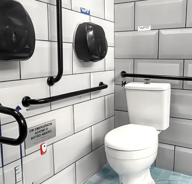 Cada detalhe é cuidadosamente planejado para atender às necessidades de usuários com mobilidade reduzida, idosos, gestantes ou qualquer pessoa que mereça autonomia e conforto no uso do espaço. Barras de apoio estratégicas, pisos antiderrapantes, portas com dimensões adequadas, altura de vasos e bancadas acessíveis, nada é deixado ao acaso.